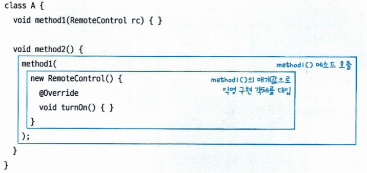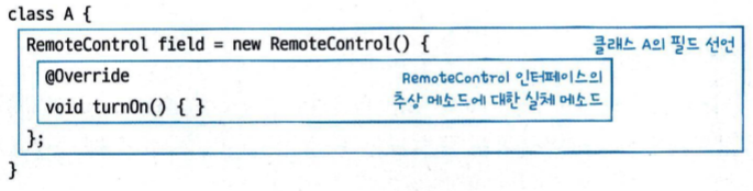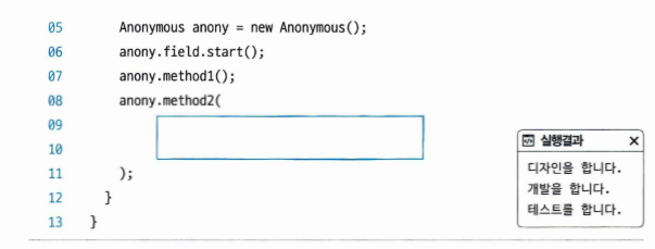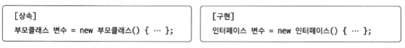 - 익명 객체를 생성할 때에는 클래스 이름이 없음