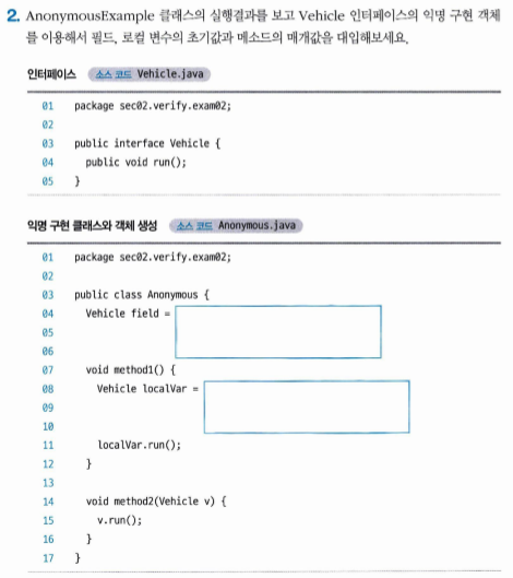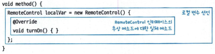 - 익명 자식 객체는 부모 타입 변수에 대입되므로 부모 타입에 선언된 것만 사용할 수 있기 때문