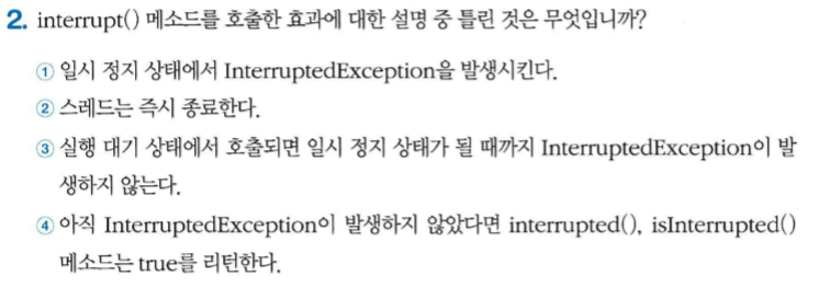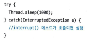 - 스레드가 일시 정지 상태에 있을 때 InterruptdException을 발생시키는 역할