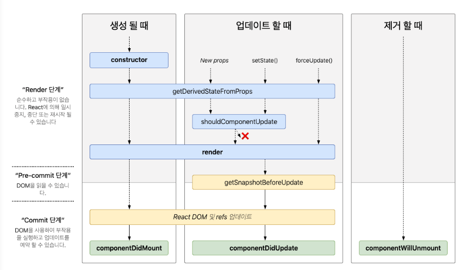 - 모든 리액트 컴포넌트에는 라이프사이클이 존재