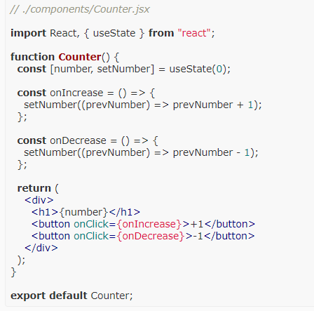 - 함수 컴포넌트에서 상태 관리를 할 때 사용