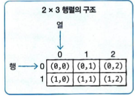 - 값들이 행과 열로서 구성된 배열을 2차원 배열이라고 한다.