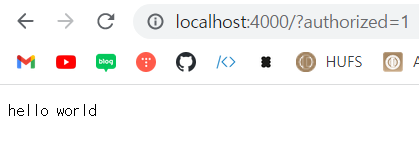- 아래 코드는 http://localhost:4000/?authorized=1 와 나머지 일때 결과가 다르다.