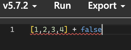 배열도 아닌, boolean도 아닌 string이 콘솔에 찍힌다. 이는 굉장히 이상하다고 볼 수 있는 자바스크립트는 이를 허용함