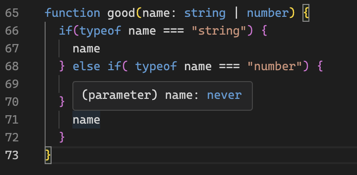 name // 여기에 뭘 쓰던 타입은 never임.