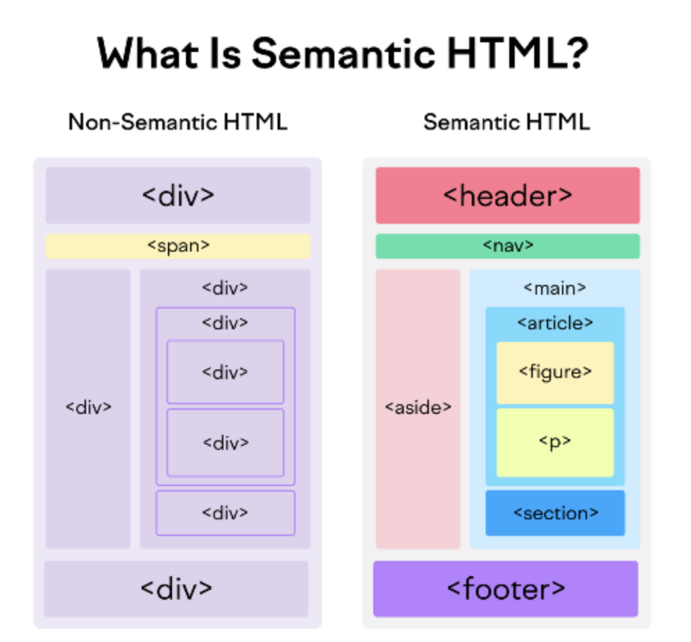 예를 들어, <header>, <nav>, <main>, <article>, <figure>, <section>, <aside>, <footer>등의 요소를 사용하여 페이지의 의미론적인 구조로 마크업하여, 검색 엔진이 콘텐즈를 이해하고 해석하기 쉽게 합니다.